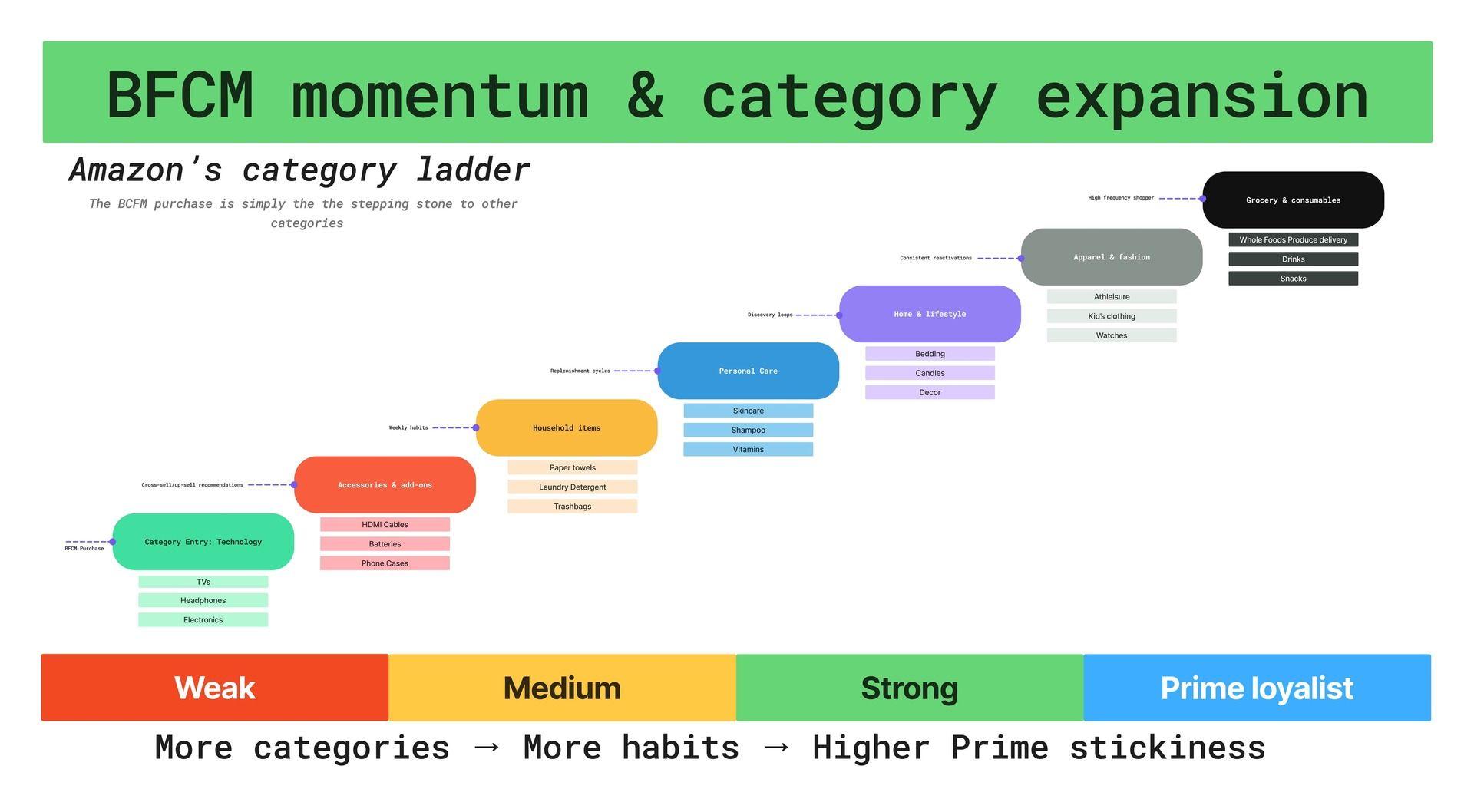 For existing Prime members, BFCM becomes the real-time mechanism to reinforce and demonstrate all of the value that Prime provides at once, creating an experience that communicates one simple truth: Prime unlocks the best version of Amazon. The entire program is designed to make you believe that Prime is the way Amazon is meant to be experienced.