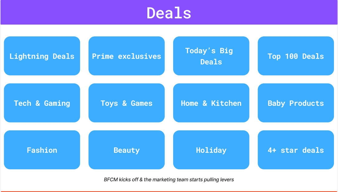 By using the momentum of BFCM for category expansion, they realize higher LTV for each individual customer. That means more replenishment cycles for perishable items (like paper towels or pet food), higher browsing volume, and more frequent purchases. Ultimately, they’re hoping to see an end user who defaults to purchasing everything from Amazon.