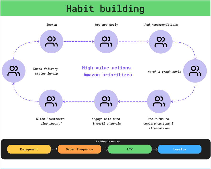 For Amazon, Black Friday isn’t just a moment to close transactions; it’s a moment to build habits. The lifecycle team uses the 12-day BFCM window to reinforce the behaviors that drive Amazon’s year-round revenue. The real objective is teaching customers to return tomorrow and not just buy today. BFCM is simply the mechanism that triggers the key habits that Amazon wants to build: