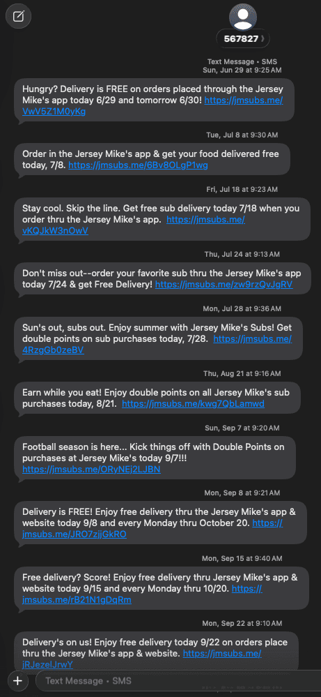 Events & Seasons: These texts tie the brand to your external world, and they position Jersey Mike’s as the default choice for specific cultural moments.